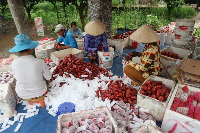 Gần đây, bà con đã áp dụng biện pháp trùm mùng lưới toàn bộ khu vườn để tránh ruồi đục trái. Xem ra giải pháp này rất hữu hiệu, vừa tiết kiệm được chi phí thuốc trừ sâu bệnh, vừa bảo đảm an toàn vệ sinh thực phẩm.