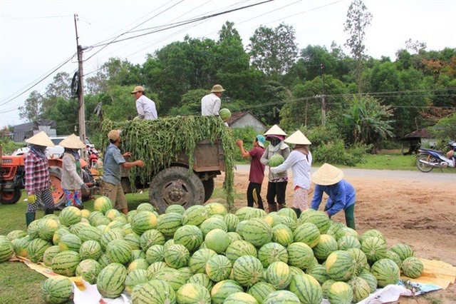 Nông dân Bình Định đang thu hoạch dưa hấu. Ảnh: Đăng Lâm.