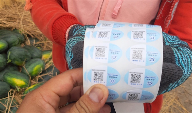 Những con tem dán lên chưa hấu do Trung Quốc phát hành. Ảnh: Đăng Lâm.