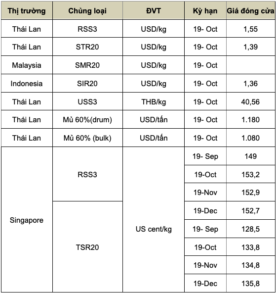 Giá cao su đóng cửa tại châu Á ngày 9/9/2019